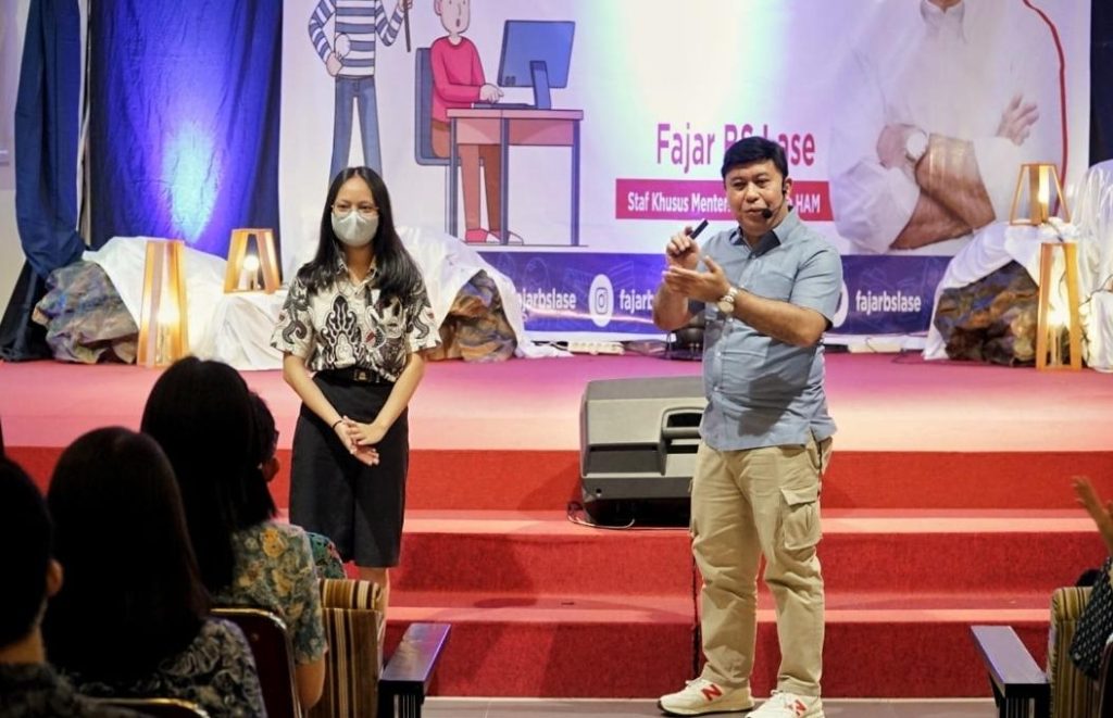 IN, MAKASSAR– Staf Khusus Menteri Hukum dan Hak Asasi Manusia (Menkumham) Republik Indonesia, Fajar B.S. Lase hadir dalam Sosialisasi Kekayaan Intelektual