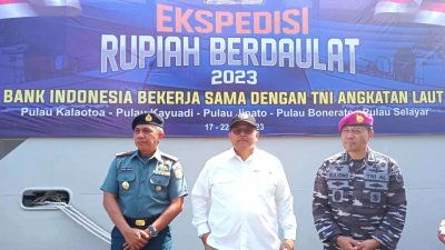 IN, MAKASSAR– Bank Indonesia (BI) Sulsel secara resmi melepas tim Ekspedisi Rupiah Berdaulat 2023, di Lantamal VI Makassar, Senin (17/07/2023). Salah satu