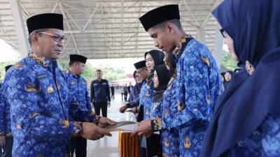 IN, MAKASSAR — Wali Kota Makassar Moh Ramdhan Pomanto secara simbolis menyerahkan sebanyak 680 SK PPPK Formasi Guru 2022 dan