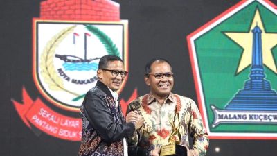 IN, JAKARTA — Wali Kota Makassar Moh Ramdhan Pomanto menerima penghargaan Apresiasi Daerah Peduli Inovasi Ekonomi Kreatif dalam peringatan 12