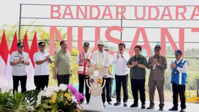 IN, KALIMANTAN— Presiden Joko Widodo melakukan peletakan batu pertama atau groundbreaking Bandar Udara Ibu Kota Nusantara (IKN) di Kabupaten Penajam