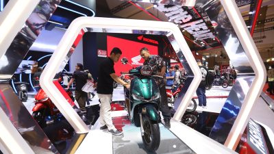 IN, JAKARTA – Booth PT Astra Honda Motor (AHM) digelaran International Motor Show (IIMS) 2024, para pengunjung dapat melihat secara